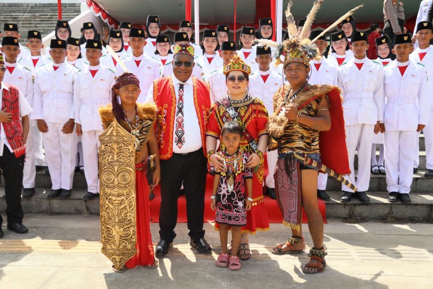 “Mari kita ajak warga masyarakat kalau fasilitas sudah terbangun dengan baik, kita hidupkan ekonomi di wilayah perbatasan. Jadi semangat kita usia kemerdekaan ke-79 bahwa tidak hanya (diisi dengan kegiatan) seremoni, tapi isi kemerdekaan dengan ekonomi sejahtera secara masif khususnya di wilayah perbatasan,” katanya.