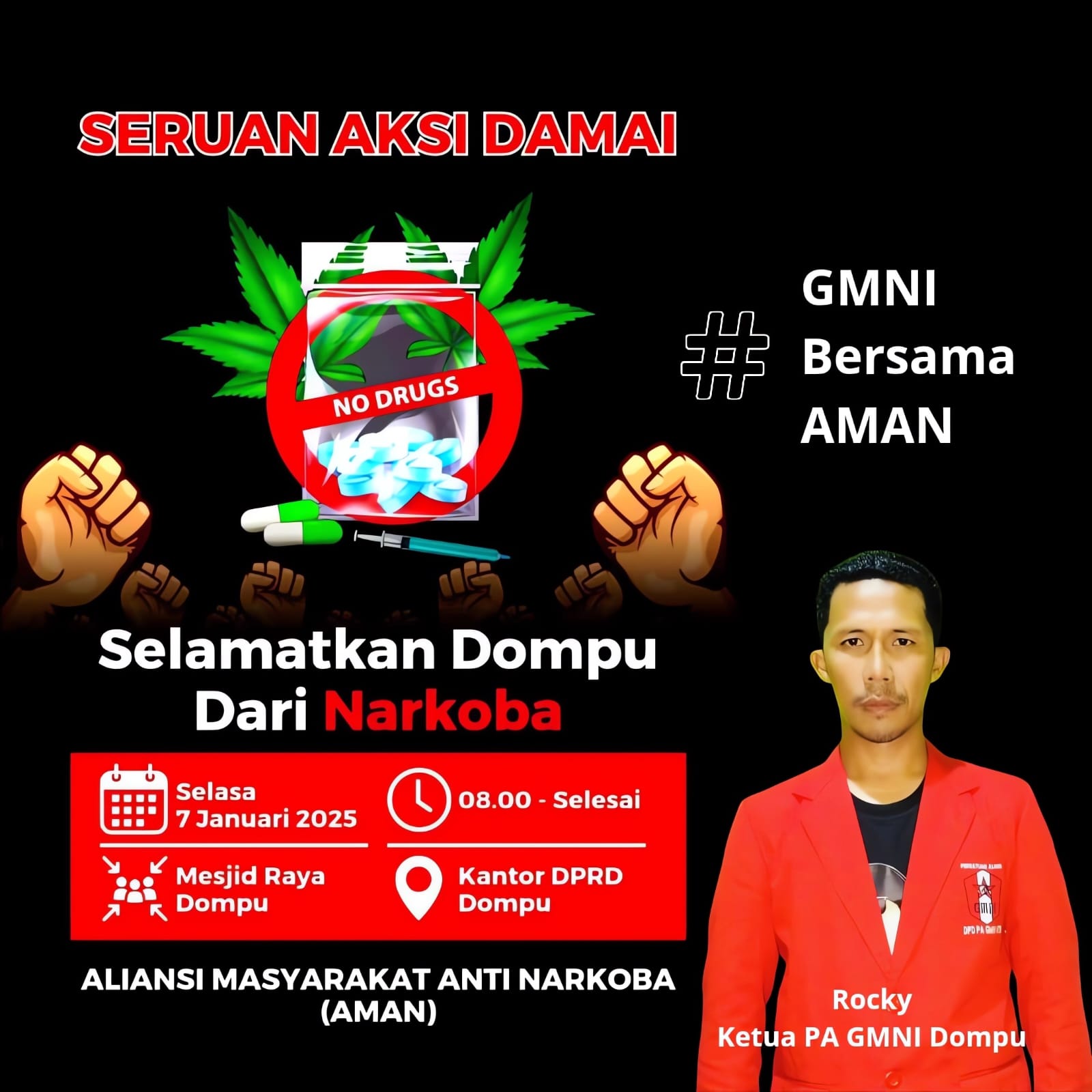 “Seruan ini disampaikan kepada kelompok civil society, ormas, organisasi kepemudaan, lsm, lbh, awak media, perguruan tinggi dan satuan lembaga pendidikan lainya serta segenap masyarakat Dompu, untuk bersama-sama memerangi narkoba,” ajaknya.