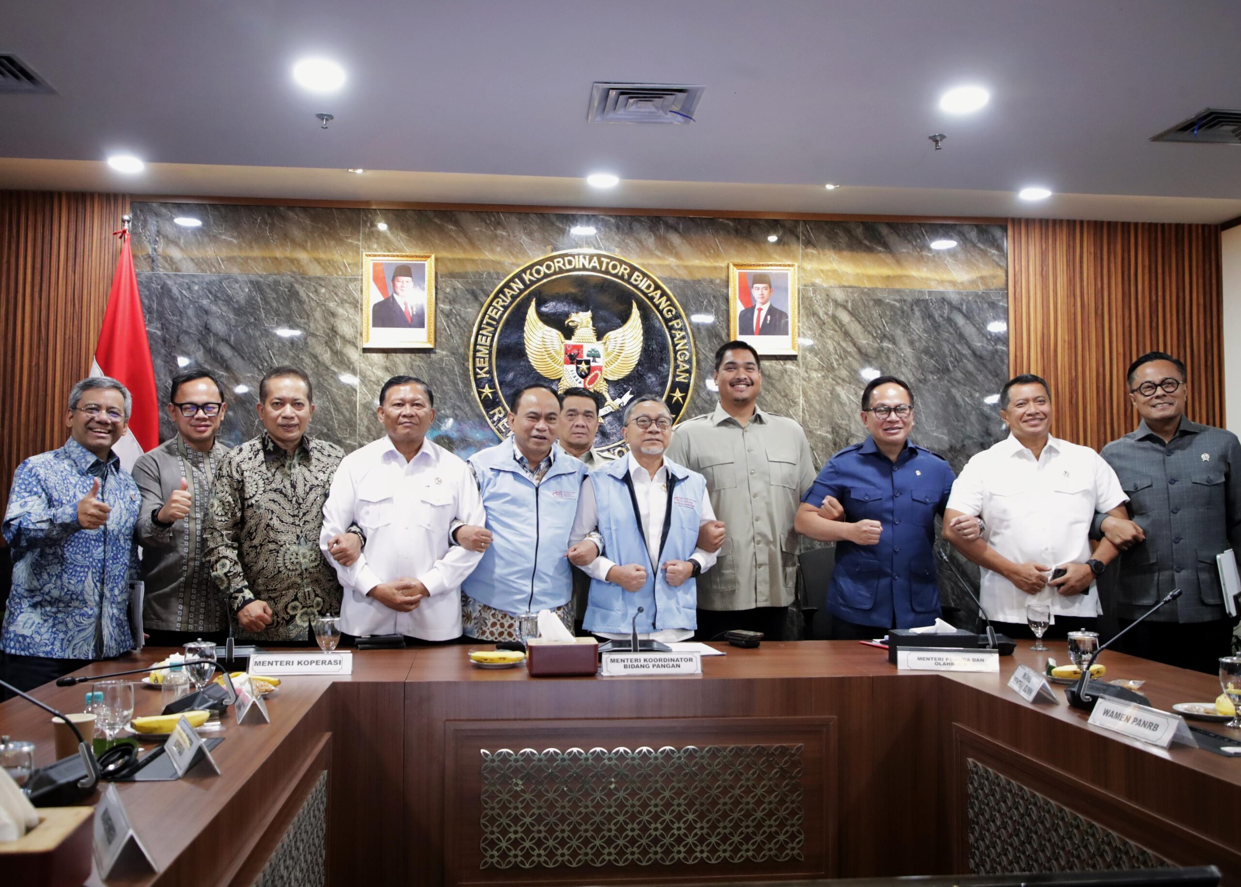 Jakarta: Menteri Pemuda dan Olahraga Republik Indonesia (Menpora RI) Dito Ariotedjo, dengan Menteri Koperasi Budi Arie Setiadi menghadiri Rapat Koordinasi Tingkat Menteri yang dipimpin Menteri Koordinator Bidang Pangan Zulkifli Hasan di Ruang Rapat Utama, rakor ini membahas tentang operasionalisasi dan pengembangan koperasi Desa/Kelurahan Merah Putih (KDKMP) ini, Menpora Dito tenegaskan sangat siap mendukung keterlibatan pemuda untuk Percepatan Pembentukan Koperasi Desa/Kelurahan Merah Putih., Kemenko Bidang Pangan, Graha Mandiri, Thamrin, Jakarta Pusat, Kamis (4/9).