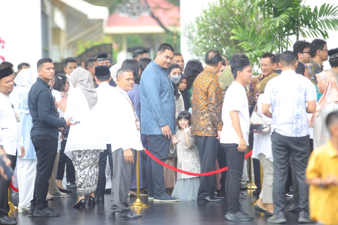 Menpora Dito tiba di kompleks Istana Kepresidenan sekitar 09.30 WIB. Menpora Dito datang bersama istrinya Niena Kirana Riskyana Dito Ariotedjo dan anaknya Sadia.