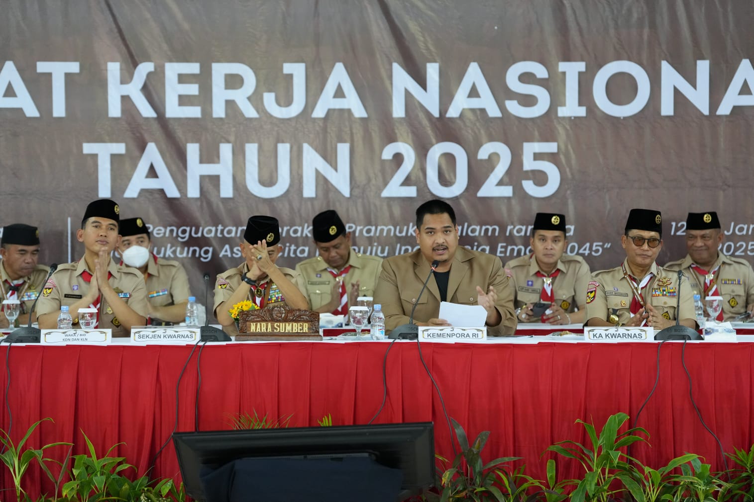 “Dalam rapat terbatas bersama Bapak Presiden Prabowo Subianto, beliau spesifik dan menyampaikan bahwa, salah satu unsur yang harus dikuatkan adalah Gerakan Pramuka,” kata Menpora Dito saat memberikan arahan pada Rapat Kerja Nasional Tahun 2025 Gerakan Pramuka di Taman Rekreasi Wiladatika, Cibubur, Jakarta, Senin (13/1).
