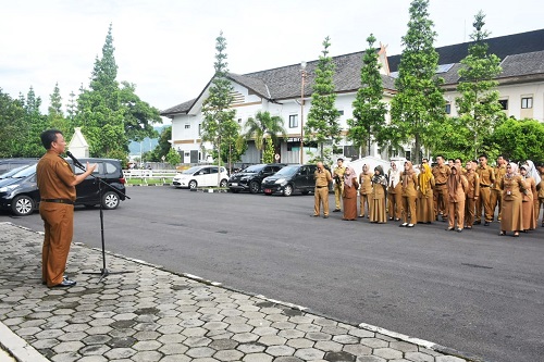 Pj Bupati Herman saat memberikan arahan dalam apel pagi yang di laksanakan BKPSDM dan Bappppeda, Senin (22/01/2023). (foto/ist)