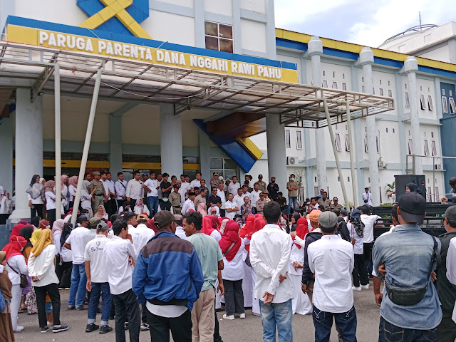 Aksi ini digelar di Gedung Paruga Parenta Dana Nggahi Rawi Pahu Kantor Bupati Dompu, Rabu.
