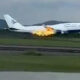 Pesawat Garuda Indonesia yang mengangkut 450 orang jemaah haji di Makassar terbakar. Foto : Tangkapan Layar
